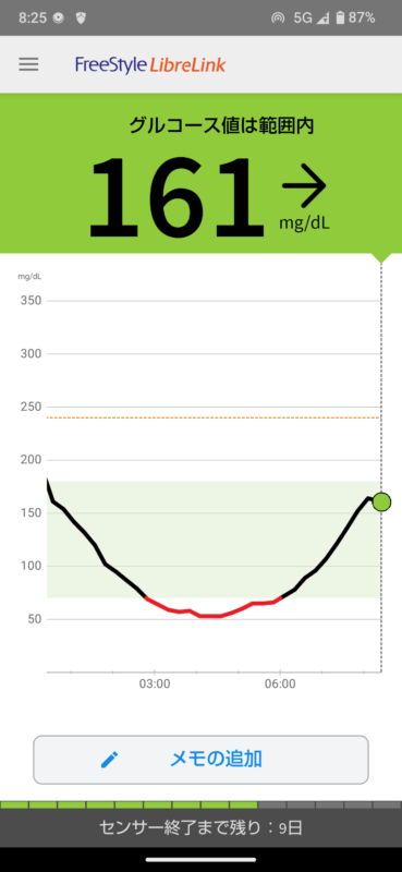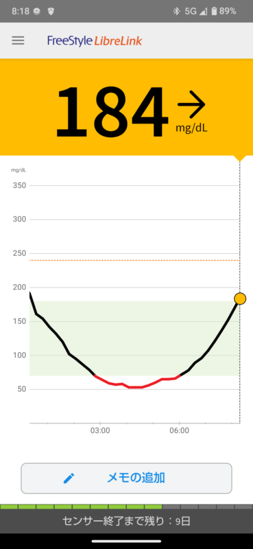 だからさ、最初の184mg/dL出た時に確認してなかったら 範囲外まで行った、という事実を知らないままって事になるよね。