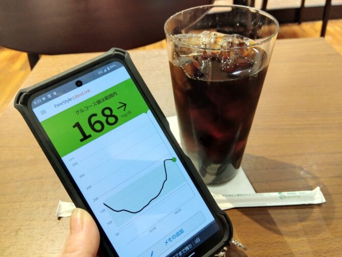 まぁ 朝方は100mg/dL程度でいい感じだったんだけど 今日は朝ごはんを食べてきたからね。