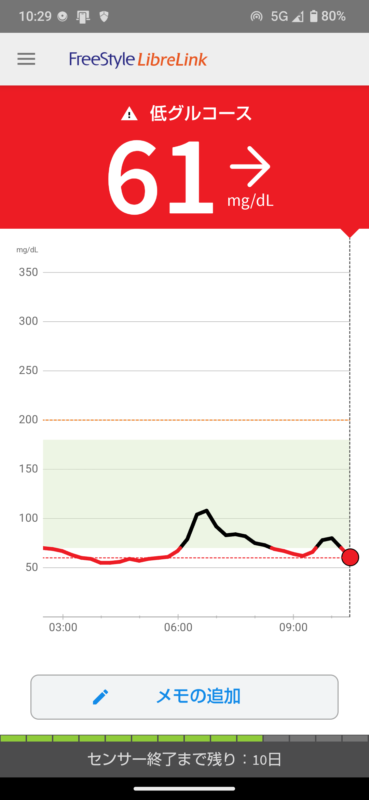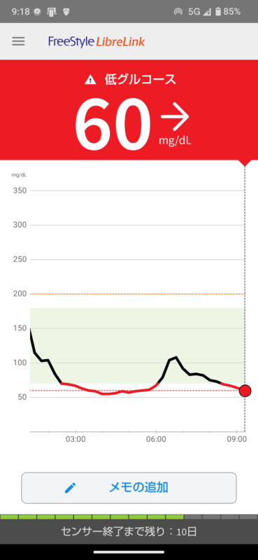 これ撮ったらまたちょっと下がりだして いま67mg/dL
