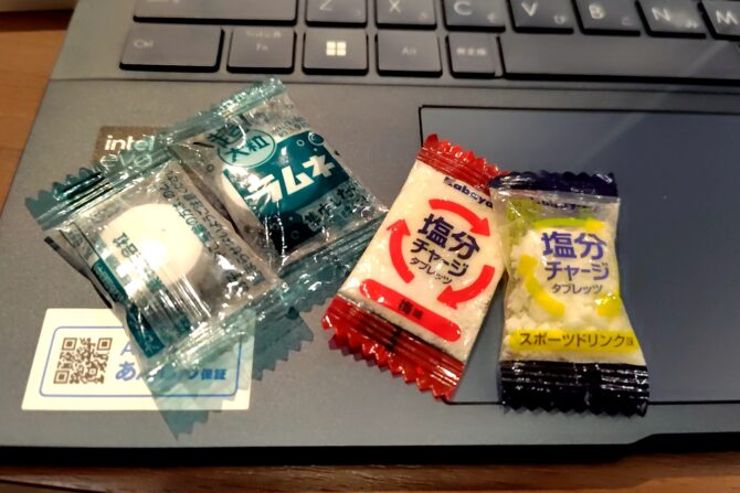 塩分チャージも引き続き常備するから 薬を入れているプラスチックのケースに入れてぐずぐずにならないようにしよ。