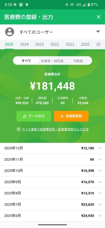 5~7月がめっちゃ高いのは 水虫治療と造影検査のせいだ。