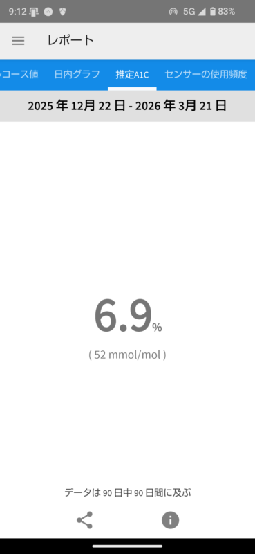 本日確認!リブレ的 推定A1cga6.9%に悪化してしまった。