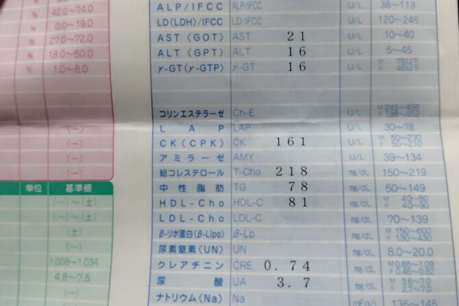 相変わらず総コレステロールは高いけど 基準値範囲ギリギリセーフっていう、ね(;^ω^)