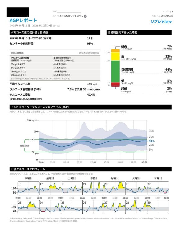 一番下に日別グルコースプロフィールって 完全に1日のグラフが出ちゃってるし。