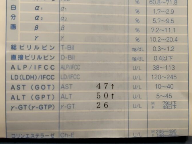 肝臓の数値らしい。