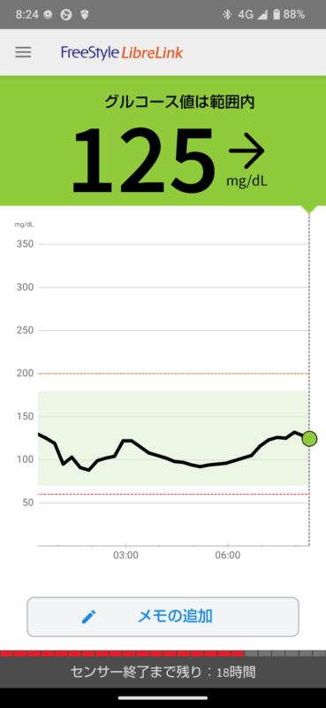 そのまま血糖値が上がれば 私の場合はざっくり計算で15mg/dLくらい上がっちゃうけど ま、誤差ってことにする。